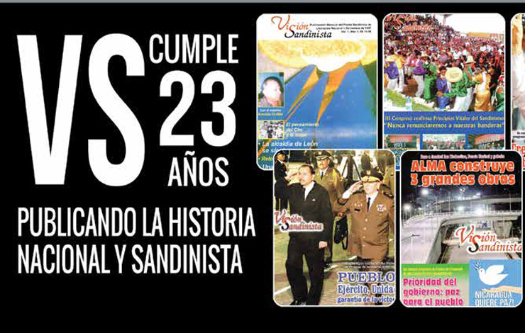 Con esta edición No.307, la Revista Visión Sandinista está cumpliendo 23 años de publicación impresa y -desde hace algún tiempo- electrónica sin variar ni un ápice de la misión y objetivos que se propusieron la Dirección y el Consejo Editorial cuando salió el primer número en noviembre de 1997: ser un medio de comunicación donde se expone la realidad nacional desde la visión del Frente Sandinista, e internacional desde la óptica de la izquierda.